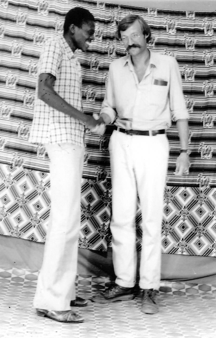 In der Mitte mein (H.F.) Doktorvater Professor Dr. Helmut Straube (1923-84), ab 1968 Vorstand des Instituts für Völkerkunde und Afrikanistik an der Universität München. Seine profunden, nicht zu- letzt auch methodischen und theoretischen, Kenntnisse sowie seine menschliche, unprätentiöse Art gaben für mich den Ausschlag zur Spezialisierung auf die Ethnologie des Subsaharischen Afrika. Wäre er auf die Ethnologie z.B. Italiens oder der Inuit spezialisiert gewesen, hätte ich mich deren Gesellschaften zugewandt. Rechts im Bild Professor Dr. Friedrich Kußmaul (1920-2009), 1972-86 Direktor des Linden-Museums Stuttgart.