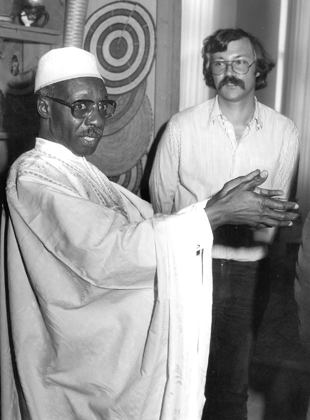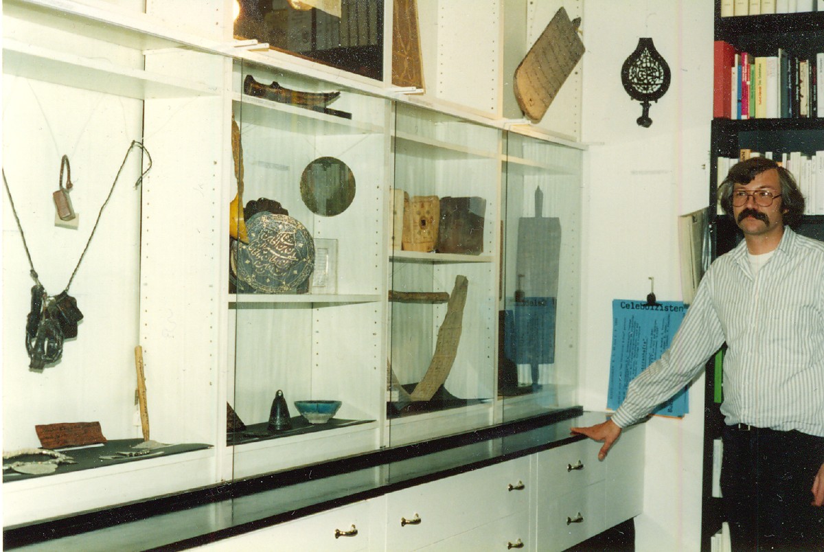 Mit dem Botschafter des Tschad, S.E. Dr. J. H. Khayar, in der Afrika-Dauerausstellung des Linden-Museums Stuttgart. Herr Dr. Khayar monierte, dass in dieser Ausstellung überhaupt nichts aus seinem Land ausgestellt sei. Das Argument der räumlichen Begrenztheit der Ausstellungs- fläche ließ er nicht gelten.